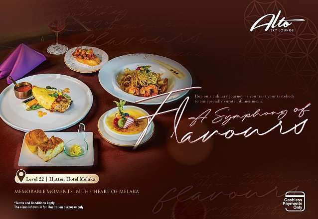 The height of luxury is found on the 22nd floor of Hatten Hotel. Soaring over a breathtaking cityscape, Alto Sky Lounge offers guests with spectacular views of Melaka’s coastal township.
